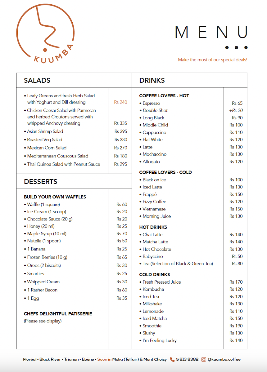 Welcome to Kuumba Coffee Ebene, a delightful stop located in IconEbene, Quatre Bornes, Mauritius. A haven for coffee lovers and food enthusiasts alike, this charming café serves a menu that emphasizes quality and flavor.